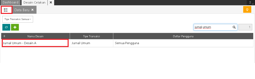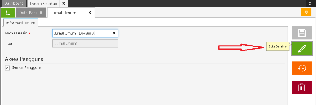 - Pilih desain Jurnal Umum yang akan digunakan kemudian klik Buka Desainer.