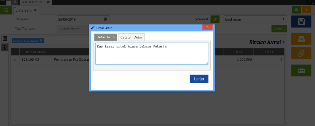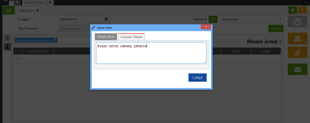 Mengisi Keterangan Detail Akun pada Jurnal Umum