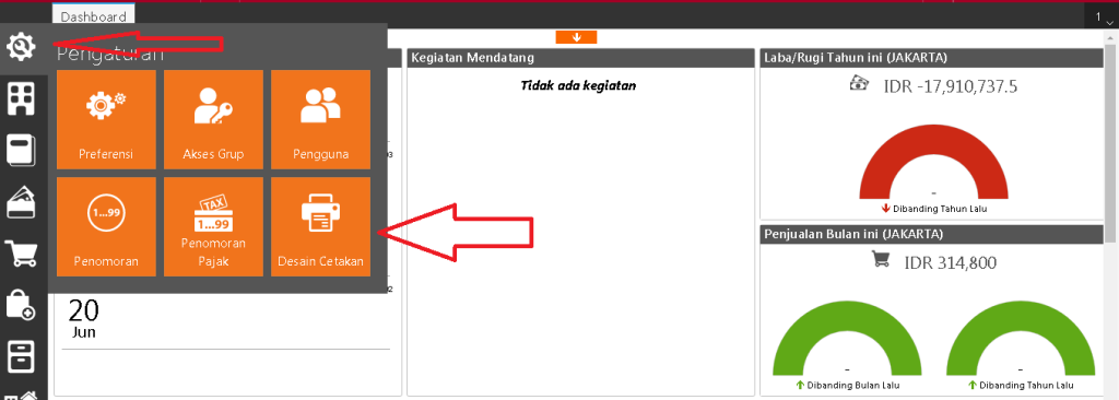 - Pilih menu Pengaturan | Desain Cetakan.