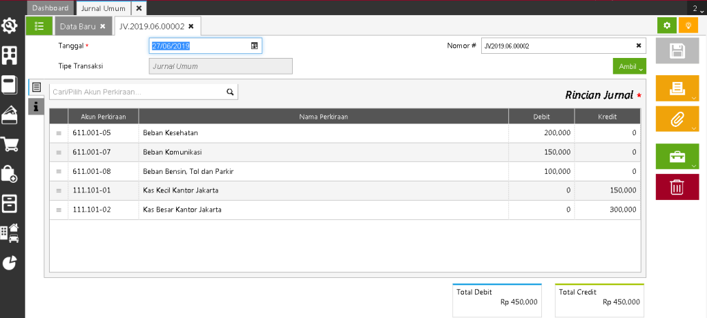Berikut panduan Menampilkan Total Nilai Debit & Credit pada Desain Cetakan Jurnal Umum :