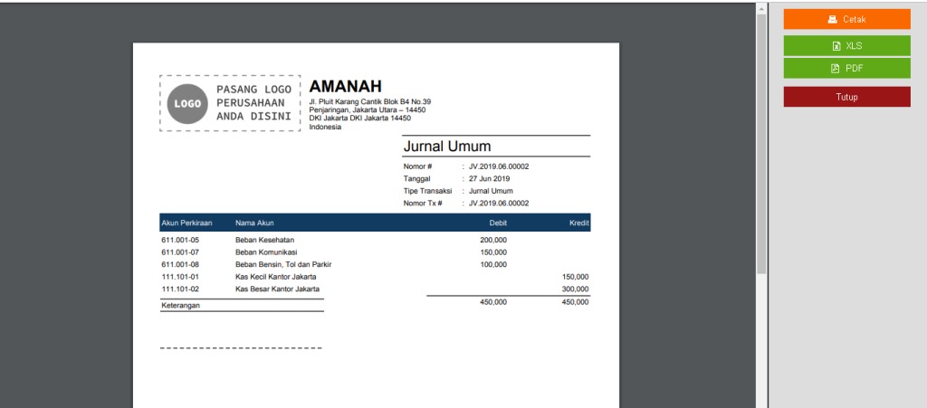 memilih Desain Cetakan Jurnal Umum - Menampilkan Total Nilai Debit & Credit Pada Desain Cetakan Jurnal Umum